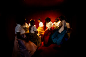 Além da montagem da peça, a residência na Ocupação 9 de Julho abrigou também a oficina “Vivência Entre Mulheres”, realizada entre maio e julho, sempre aos domingos pela manhã, e que reuniu moradoras e outras participantes em encontros de escuta, canto e partilha. A ação foi fundamental na construção da peça, inclusive na composição do coral cênico presente no espetáculo, que conta com a participação de diversas integrantes dessa oficina.