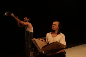 Espetáculo “Velhos caem do céu como canivetes”, que abre a Ocupação Maranhense: 20 Anos da Pequena Companhia de Teatro no CCBB SP. Foto: Ayrton Valle.