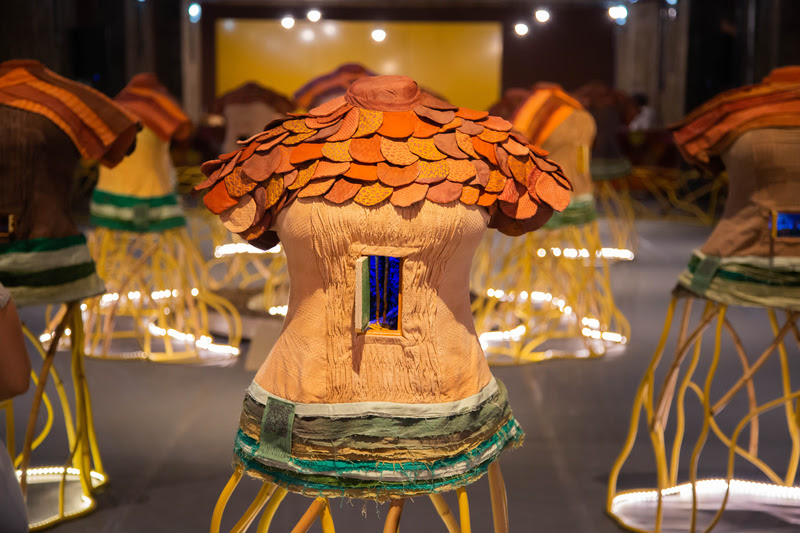 Sinopse: Nesta performance, a artista manauara Keila-Sankofa manifesta o Cabeça de Cabaças, uma presença visual e sonora que entoa narrativas sensoriais sobre a Amazônia. O paramento, confeccionado com cuias e cabaça, surge como uma aparição que reinscreve o encontro histórico entre as populações negras e indígenas. Ao centrar-se nestes suportes, a artista celebra uma herança compartilhada entre as identidades afrodiaspóricas e originárias. Mais que objetos, esses itens são centrais na pesquisa e vida da artista, transitando entre o uso prático, o rito sagrado e as cosmogonias de criação do mundo. É a imagem viva da multiplicidade amazônica traduzida em matéria e som.