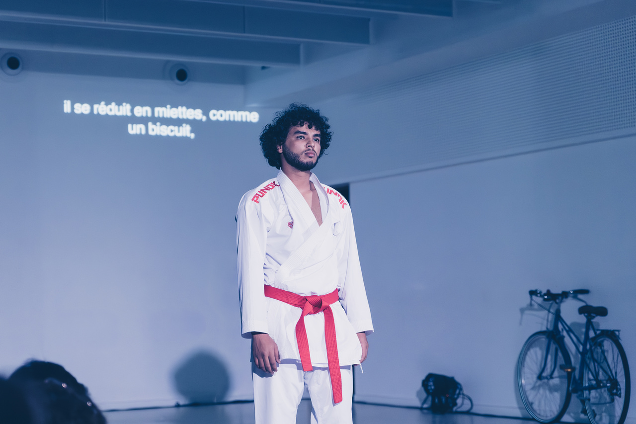 Sinopse: Cinco guerras atravessam a vida de Mohammed Alqudwa em Gaza – e a última ainda não terminou. Quando ela irrompe, o jovem palestino tem cinco anos: e, depois, doze, quinze e dezoito anos. O estudante aplicado daquela época é, também, um exímio praticante de karatê e um poeta. Poeta que coloca palavras no indizível de um cotidiano atingido por bombas, de um corredor humanitário que não tem nada de humano, de uma esperança cujas fundações ainda precisam ser reconstruídas. Nesta abertura de processo de seu primeiro espetáculo, com direção da brasileira Martha Kiss Perrone, por meio das palavras e gestos que combinam teatro, dança e karatê, Mohammed questiona os significados de identidade e memória coletiva de uma terra e de um povo que vivem um século de massacres ininterruptos. Seu trabalho explora as tensões entre esperança e confinamento, por meio de uma poesia enraizada na experiência cotidiana dos palestinos.