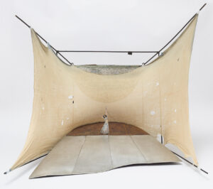 Flávio Império (1935-19850) formou-se em arquitetura na Faculdade de Arquitetura e Urbanismo da Universidade de São Paulo (FAU-USP), mas desde cedo transitou entre os campos do teatro, das artes visuais e do urbanismo. Essa fluidez entre disciplinas era uma questão de habilidade técnica, mas sobretudo de um posicionamento crítico frente às compartimentalizações acadêmicas e ao elitismo da arte tradicional. O artista faleceu em decorrência do HIV, em 1985, aos 50 anos de idade.