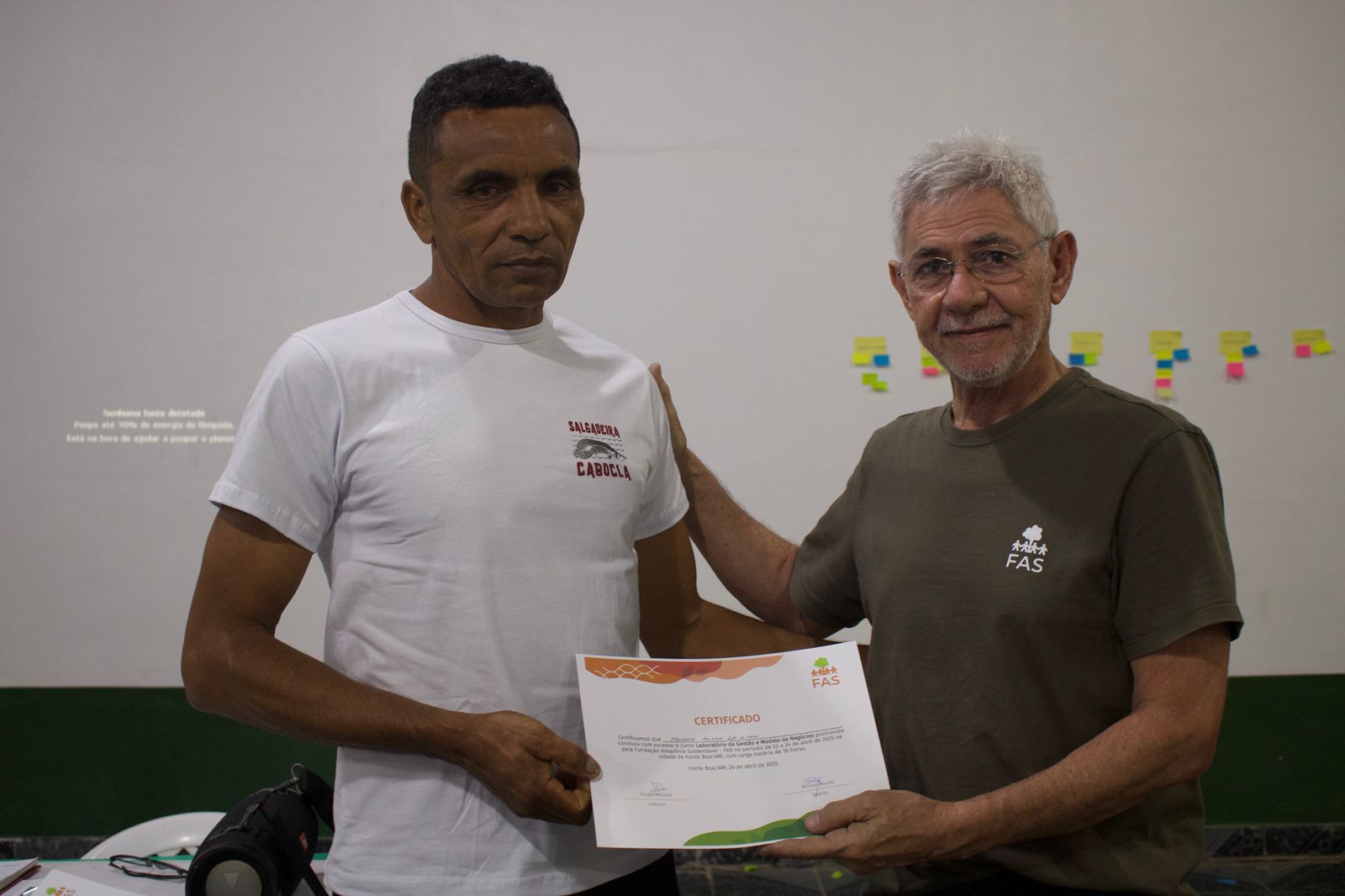 Direcionado para a equipe de gestão da Salgadeira Cabocla, empreendimento de base comunitária responsável pela salga artesanal do pirarucu, o treinamento abordou temas como comportamento empreendedor, finanças, comercialização, vendas, processo produtivo e controle de qualidade. O objetivo é qualificar as equipes para consolidar um modelo de negócio eficiente, sustentável e com potencial de escala. “Para nós, da Fundação Amazônia Sustentável, a capacitação representa um marco na profissionalização da cadeia produtiva do pirarucu”, afirma Wildney Mourão, Gerente de Empreendedorismo e Negócios Sustentáveis da FAS.